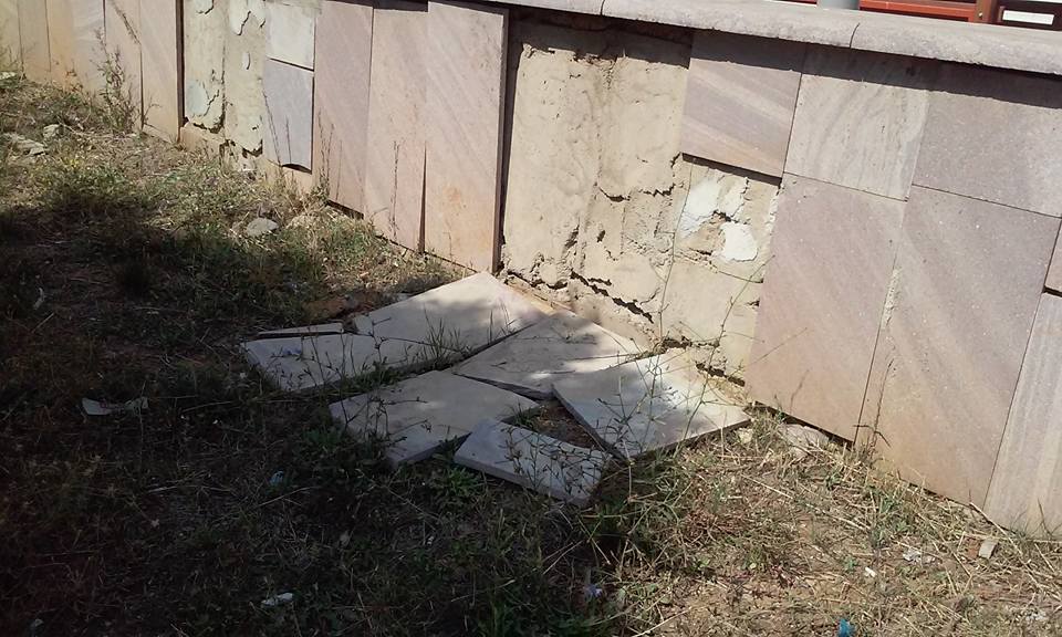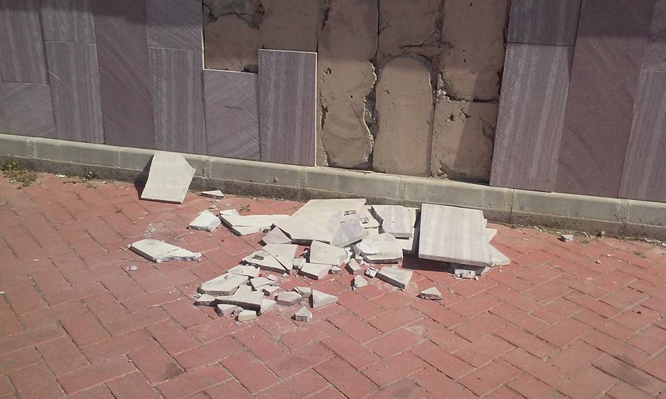 Beylikbağı bölgesinde yaklaşık üç sene önce hizmete açılan Ahmet Penbegüllü kültür salonunun dış cephe duvar granitleri dökülmeye başladı. Çevre sakinleri ise olaya tepki göstererek yapanlardan hesap sorulmasını istediler.