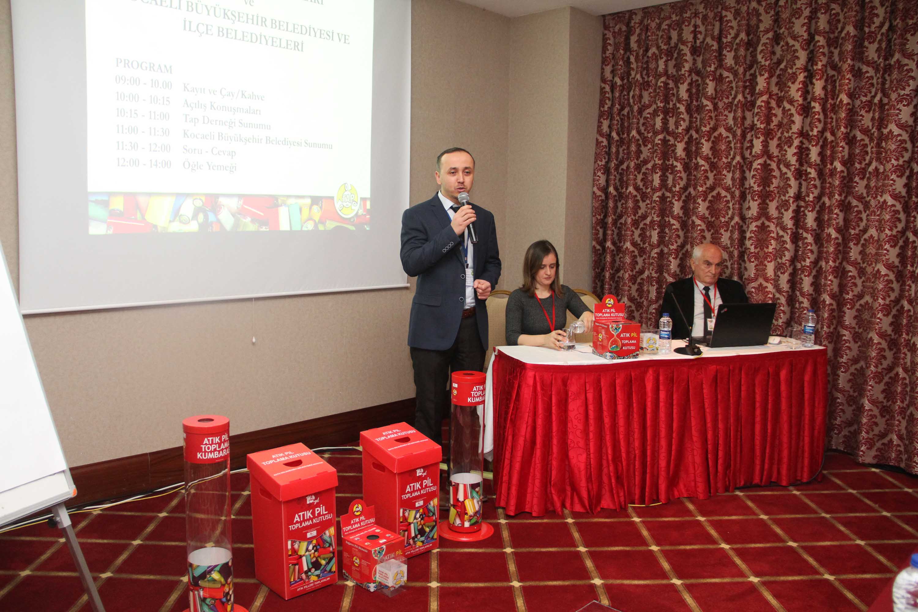Atık pillerin toplanması, taşınması ve geri kazanımı/bertarafı konularında sunum yapan Çevre ve Şehircilik Bakanlığı tarafından Yetkilendirilmiş Kuruluş olan TAP Derneği’nden Kimya Yüksek Mühendisi Savaş Arna, atık pillerin toprağa ve içme sularımıza karışmasının çevre ve insan sağlığına ne denli zararlara yol açtığı konusuna vurgu yaparak, atık pillerin kaynağında ayrı toplanması konusunda Kocaeli’de hedeflenenin üstünde atık pil toplamanın gerçekleştiğini söyledi. Arna, Kocaeli Büyükşehir Belediyesinin ilçe belediyeleri ve kamu kurum/kuruluşlarıyla koordinasyonu çok iyi sağladığını ve diğer İllere örnek teşkil ettiğini vurguladı.