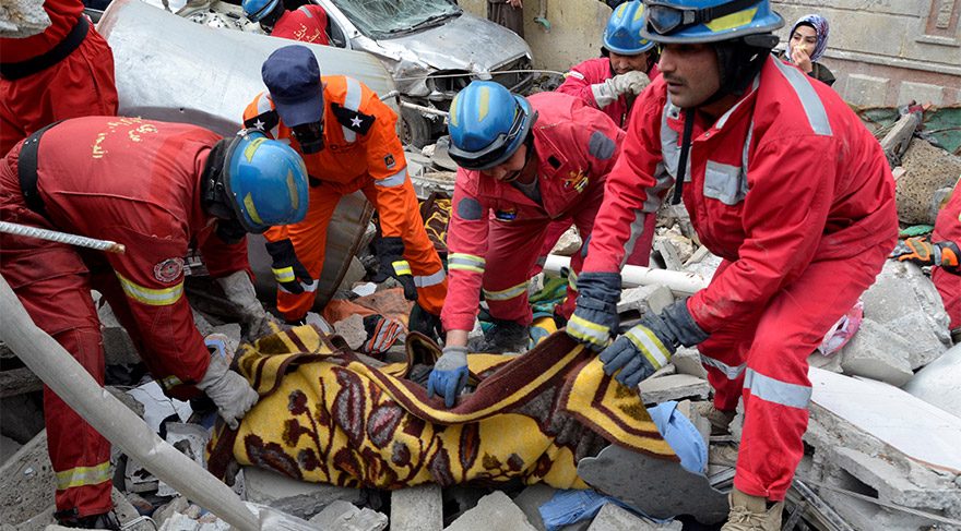Arama-kurtarma ekipleri, çöken binanın altından sağ kalan sivilleri kurtarmaya çalışıyor.