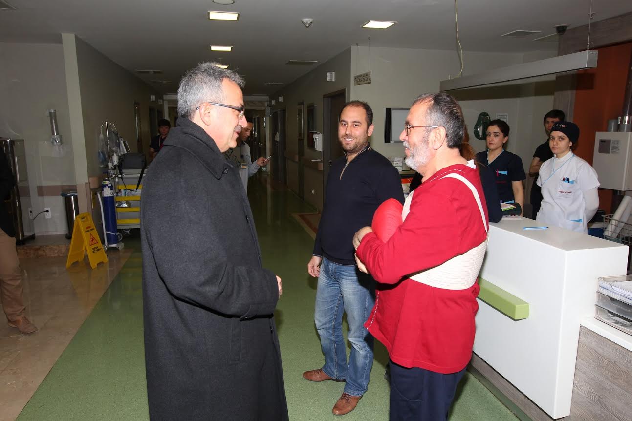Gebze Belediye Başkanı Adnan Köşker, Medikal Park Hastanesi’nde ameliyat olan Eskihisar Mahalle Muhtarı Tayfun Özcan’ı ziyaret etti. Özcan’ın sağlık durumu hakkında hastane yetkililerinden bilgi alan Başkan Köşker, Eskihisar Mahalle Muhtarı Tayfun Özcan’a acil şifalar diledi, biran önce sağlığına kavuşup görevinin başına dönmesi temennisinde bulundu. Özcan da Başkan Köşker’e ziyaretinden ötürü teşekkür etti. Hastanede tedavi gören diğer hastaları da ziyaret ederek yakınlarıyla sohbet eden Gebze Belediye Başkanı Adnan Köşker, acil şifalar temennisinde bulundu.