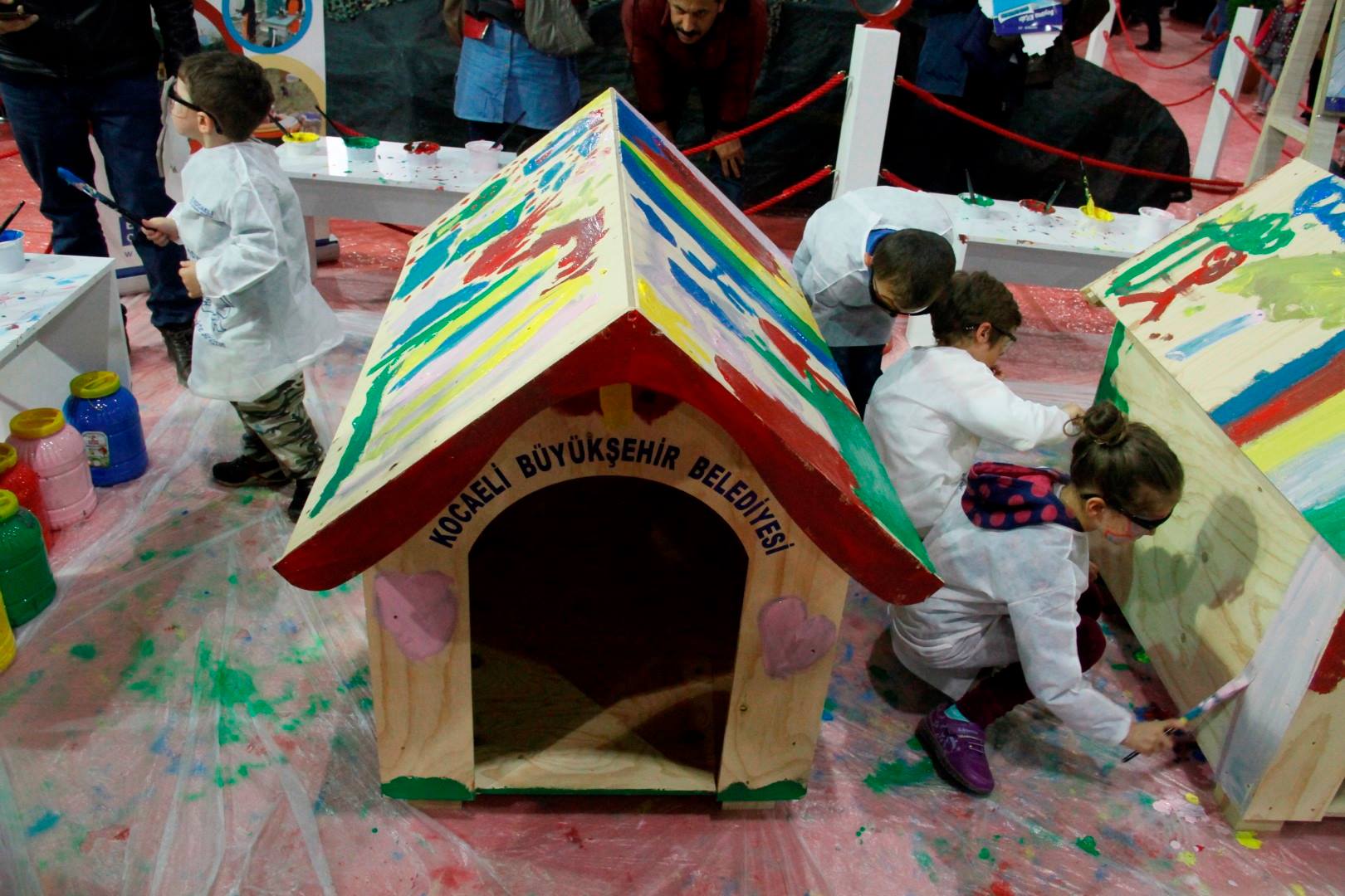 Belediyeden yapılan yazılı açıklamada, Kocaeli Büyükşehir Belediyesi Sağlık ve Sosyal Hizmetler Dairesi Başkanlığı tarafından 23 Nisan Uluslararası Çocuk Festivali'nde çocuklar tarafından boyanan köpek kulübelerinin son kısmının da KOÜ'deki sokak hayvanları için üniversiteye verildiği kaydedildi.