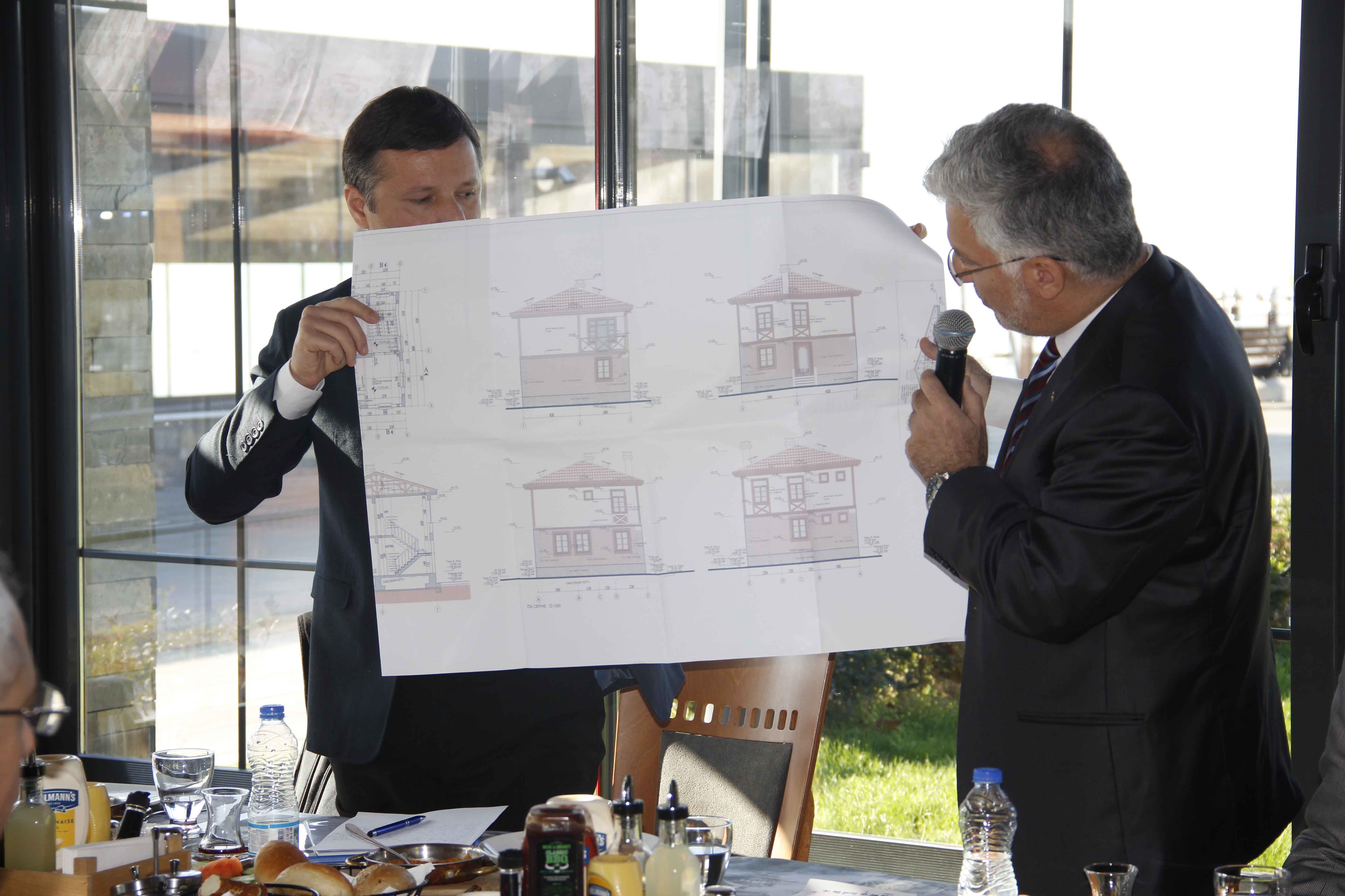 Yüksek Mimar M. Zekeriya Özak’ın köy evleriyle ilgili uygulamaya alınan yapı projelerini imar sorumlularına örnek gösterdiği toplantıya, İmar ve Şehircilik Dairesi Başkanı Osman Günler, İmar Müdürü Mustafa Gökhan Baykan’ın yanı sıra 12 ilçenin teknik başkan yardımcıları, imar müdürleri, İmar ve Şehircilik Dairesi şube müdürleri katıldı.