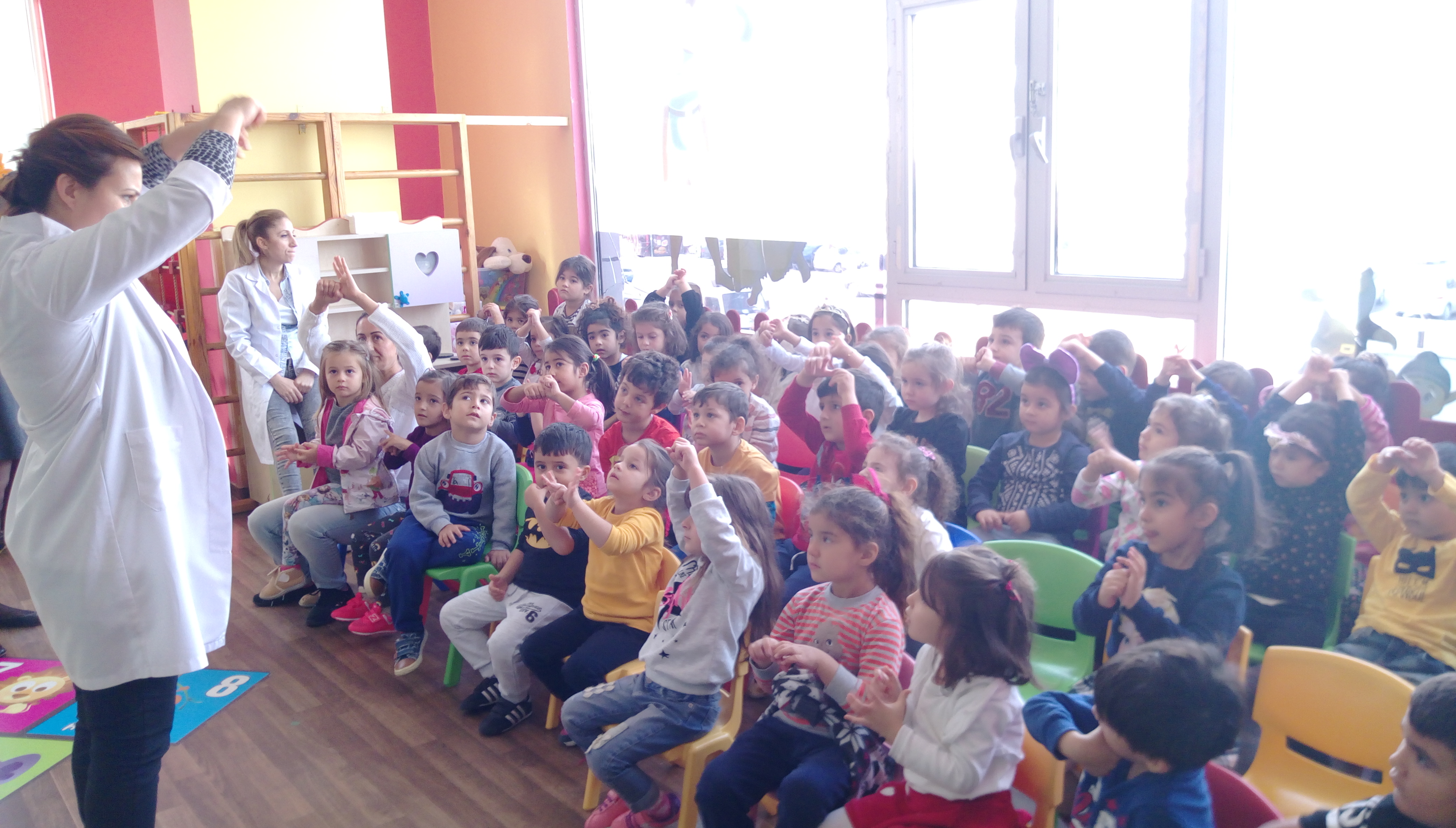 Enfeksiyon Kontrol Hemşiresi Nazan Alkan Baş okuldan ayrılmadan miniklerden bu öğrendiklerini unutmamalarını ve ailelerine de öğretmelerinin sözünü aldı.