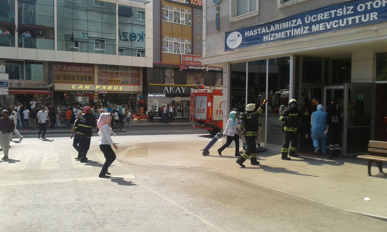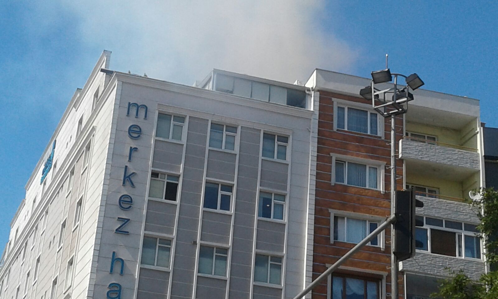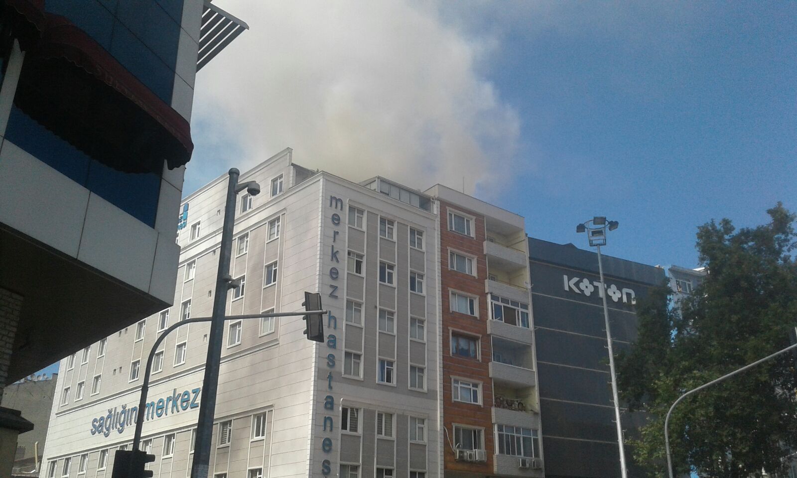 Merkez hastanesinin bitişiğinde bulunan binanın çatı katında çıkan yangın hastaneye sıçrama ihtimaline karşılık önlem alındı.