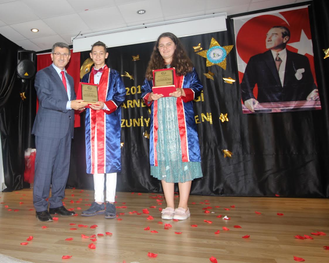 Özel İlim Eğitim Kurumları konferans salonunda Karne Şenliği ve Mezuniyet programı gerçekleştirildi. Saygı duruşu ve İstiklal marşının ardından öğrencilerin hazırlamış olduğu bağlama, gitar dinletisi, oratoryo ve anadili rondu, spor ve sanatta başarı belgelerinin dağıtımı, okul birincilerine plaketlerin verilmesi, TEOG Türkiye birincisi olan iki öğrenciye belge ve plaketlerin verilmesi, bayrak teslim töreni ve son olarak 8. Sınıfların kep atımıyla etkinlik sona erdi. Programda Özel İlim Yön. Kur. Başk. Nevzat Coşkun ‘’ Bu yıl İlim Ortaokulumuzun ilk mezunlarını verdik. İlk yılımız olmasına rağmen TEOG da %91 lik bir başarıyla Kocaeli’de 7.si olurken, İlçede 1. Sırada yer aldık ve TEOG sınavında tüm soruları doğru yanıtlayarak Türkiye 1.si olan iki öğrencimiz mevcut.