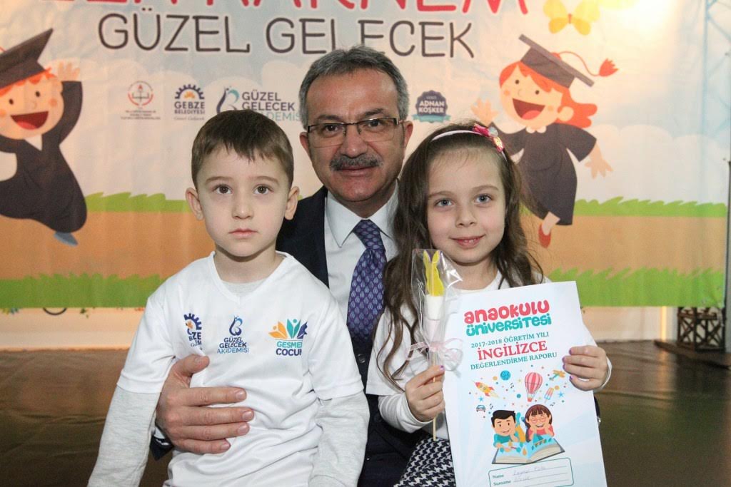 Gebze Belediyesi tarafından hayata geçirilen Anaokulu Üniversitesi’nin katılımcı minikleri karnelerini Gebze Belediye Başkanı Adnan Köşker’in elinden aldı.