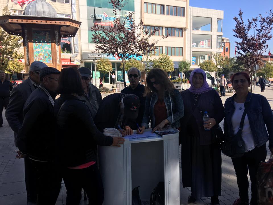 CHP Gebze İlçe Kadın Kolları parti binası önünde 17-18-19-20 Ekim tarihlerinde saat 12.00-17.00 aralığında imza kampanyası düzenledi. İmza kampanyasına Kadın Kolları Başkanı Ülker Yiğit ile Kadın Kolları yöneticileri ve partililer katıldı. Parti binası önünde açılan imza standına Gebzelilerde imza vererek destek oluyor.