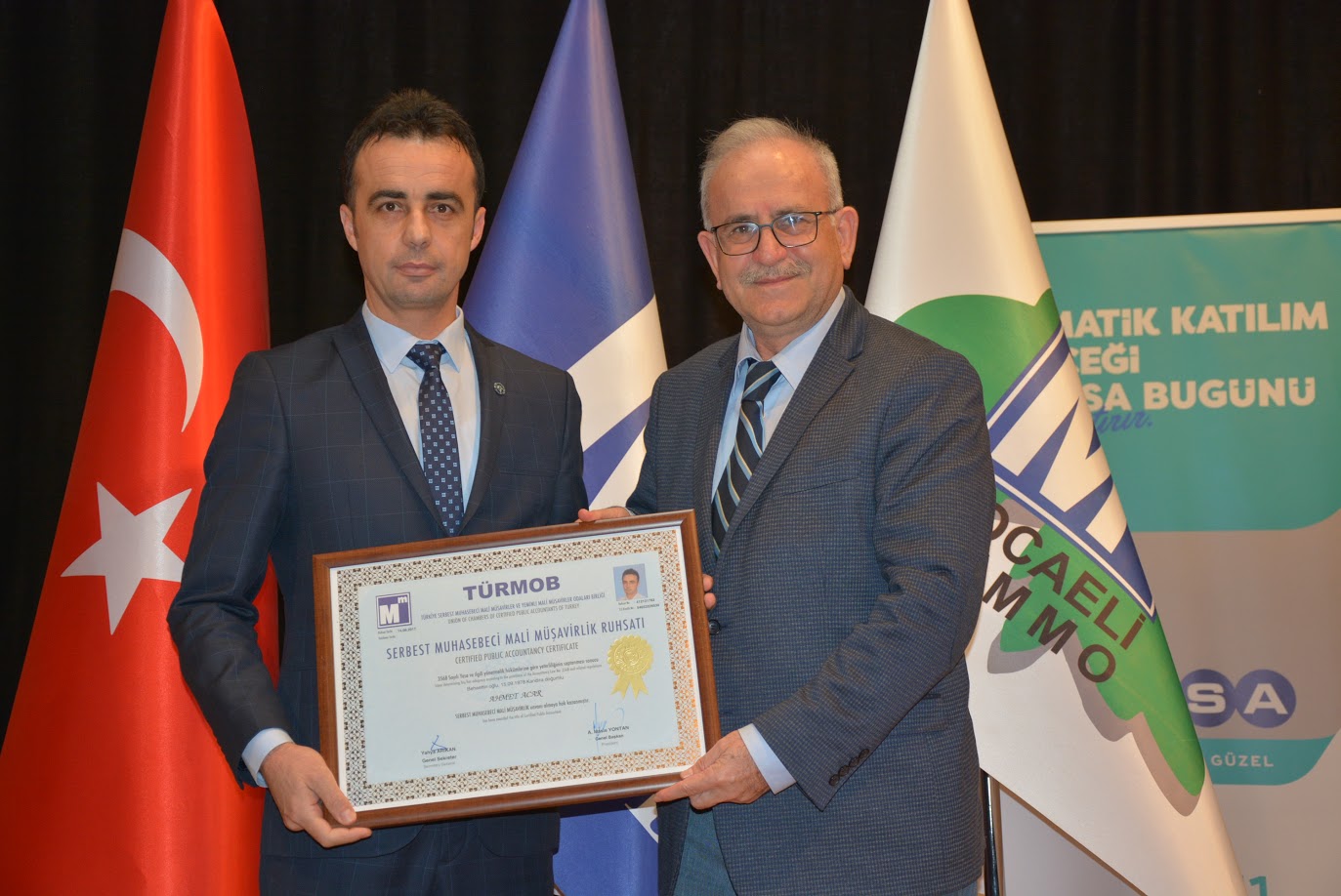 Bodur’un ardından SMMM Daimi Gümüş, hazırladığı ‘Muhtasar ve Prim Hizmet Beyannamesi Genel Tebliği ve Defter Beyan Sistemine Yönelik Olarak Vergi Usul Kanunu Genel Tebliğ Taslağı’ konulu sunumu gerçekleştirdi. Sunum ile yapılan bilgilendirmenin ardından oda üyeleri konuyla ilgili görüşlerini belirtti. Gümüş’ün ardından AVIVASA Emeklilik Kurumsal Projeler Vakıflar ve Satış Yönetimi Takım Lideri İsmail Genişoğlu, zorunlu bireysel emeklilikle ilgili ‘Otomatik Katılım’ konusunda sunum gerçekleştirdi. Toplantı; oda üyelerinin dilek ve temennilerini paylaşmasının ardından gündem maddelerinin onaylanmasıyla sona erdi. Meclis toplantısının ardından, mali müşavirlik ruhsat töreni gerçekleştirildi. Muhasebecilik tecrübelerinin ardından eğitimlerini alan; Ahmet Acar, Ahmet Duman, Ali Zeytin, Atilla Oymak, Dilek Timur, Emre Sümer, Erdal Erdoğdu, Fatma Kahraman Gudil, Fatma Taşdan, Gökhan Bozalan, Gökhan Gürbüz, Gönül Çelik, Hatice Atasoy, İbrahim Tosuner, Nilüfer Küçükateş, Orhan Karakaş, Seda Geçel, Semra Yıldız, Serkan Elma, Turgut Eyidemir ve Zeliha Alkan Temizalay’ın stajlarını başarıyla tamamladığı bildirildi. 21 mali müşavirden 13’ü törene katılarak ruhsatnamelerini tecrübeli mali müşavirlerden teslim aldı.