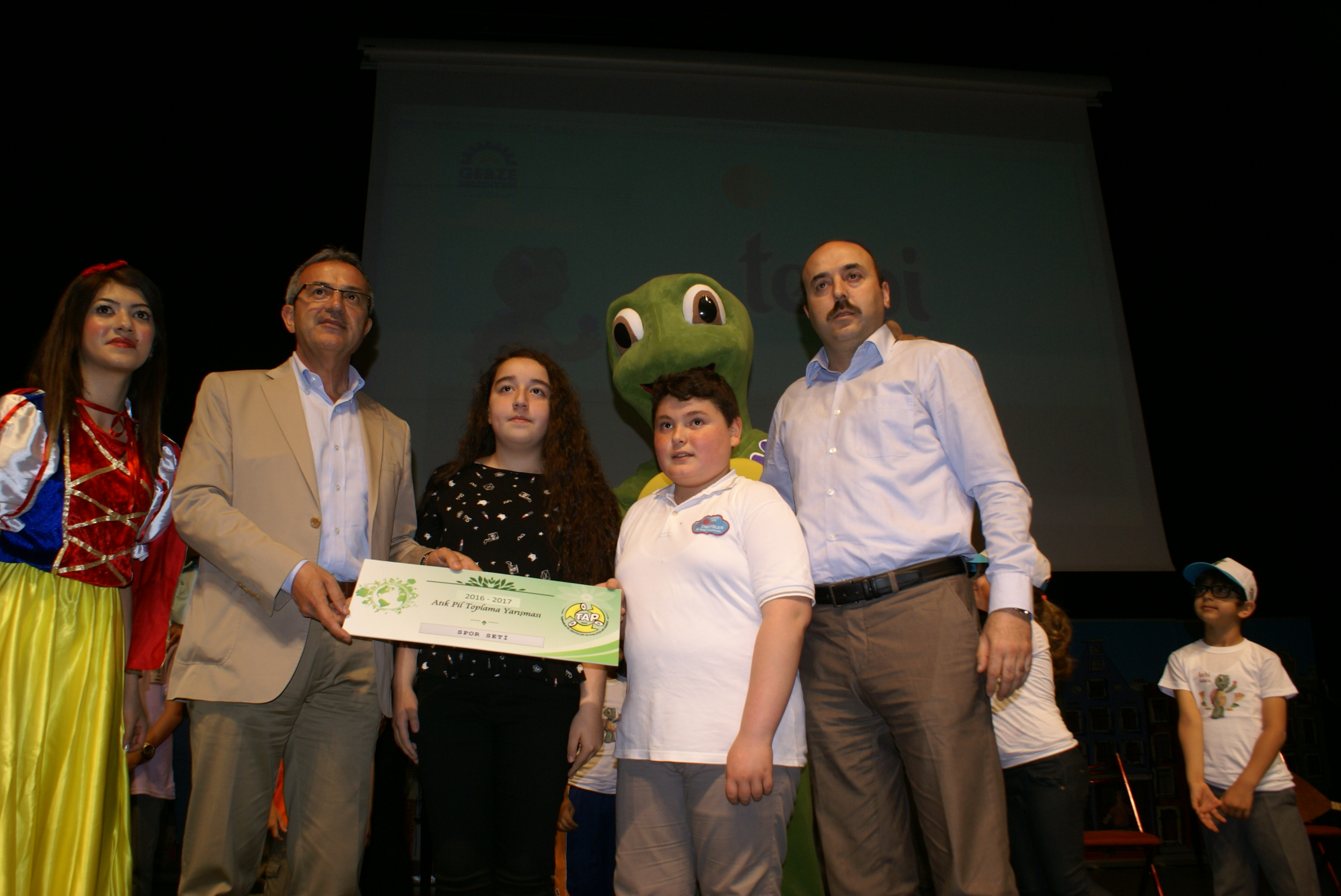 Çevre Haftası dolayısı ile dün Gebze Osman Hamdi Bey sahnesinde program düzenlendi. Programa Gebze Belediye Başkanı Adnan Köşker, Belediye Başkan Yardımcısı Nilay Ayran, İlçe Spor Müdürü Gökhan Yavaşer, Belediye temizlik işleri müdürü Yalçın Yıldırımtepe, Milli Eğitim Şube Müdürü Mahmut Aşıkoğlu, okul müdürleri, öğrenci ve öğretmenler katıldı. Programda konuşan Gebze Belediye Başkanı Adnan Köşker, çevre ve doğanın temizliğinin önemine dikkat çekerek, “çevreyi ve doğayı kirleten anne ve babanız dahi olsa uyarıda bulunmalısınız” dedi. “Çevre bizim ikinci evimiz” diyen Köşker; “Nasıl ki evimizin kirli olmasını istemiyorsak çevreyi ve havayı da kirletmeyeceğiz, sokakta yediğimiz hiçbir şeyin atığını çevreye atmayacağız, cebimize koyup en yakın çök kutusuna atacağız” dedi. Ardından Gebze’nin maskotu “Terbi” tanıtım filmi gösterildi ve sonra da en çok atık pil toplayan Emlak Konutları İlkokulu, Diler Demir Ortaokulu ve 50. Yıl Chrysler Ortaokulu müdür ve öğrencilerine ödülleri başkan Köşker tarafından verildi. “Çevre ve geri dönüşüm” konulu tiyatronun ardından öğrencilere çeşitli hediyeler dağıtıldı.