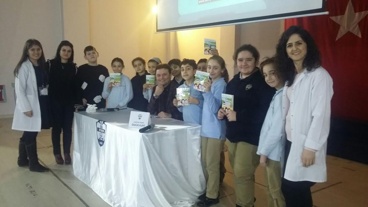 Türk Dili ve Edebiyatı zümremizin rehberliğinde hazırlanan yazar söyleşimizde ortaokul öğrencilerimiz gazeteci yazar Ömür Kurt ile buluştu. Söyleşi, yazarımızın "Karaca ve Yürüyen Köşk" kitabından esinlenerek hazırlanan dramayla başladı. Yazar ilk defa sahneye bu şekilde davet edildiğini ve bundan ötürü duyduğu mutluluğu dile getirdi. Mustafa Kemal Atatürk'ün Yalova'ya olan özel ilgisini, Yürüyen Köşk'ü ve ulu çınarın öyküsünü dinleyen öğrencilerimiz söyleşinin ardından yazarımıza kitaplarını imzalatmanın mutluluğunu yaşadılar.