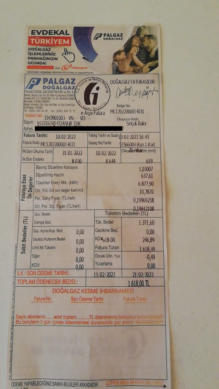 Çayırova’da ikamet eden Edanur Işık isimli vatandaş Palgaz’ın kendisini mağdur ettiğini iddia ederek gelen faturaya da tepki gösterdi.