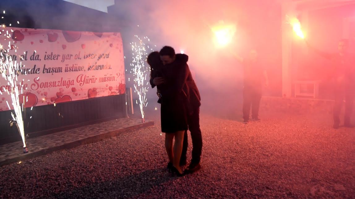 Özellikle 7 yıldır düzenlediği sosyal etkinlikler, geziler ve konserler ile bölgemizde adından sıkça söz ettiren Rota’nın kaptanı Ali Kemal, ekip arkadaşlarıyla birlikte ummalı bir çalışma sonucunda kız arkadaşı Dilek Erdoğan’a rüya gibi bir evlenme teklifi düzenledi. 100 kişilik ekip ile görselliği en üst seviyede olan bir ortamda evlenme teklifi karşısında şaşkınlığını gizleyemeyen Erdoğan’ın gözleri doldu. Bu güzel teklif karşısında ‘’Evet’’ yanıtını duyan misafirler alkışlarıyla çiftin mutluluğuna ortak oldular.