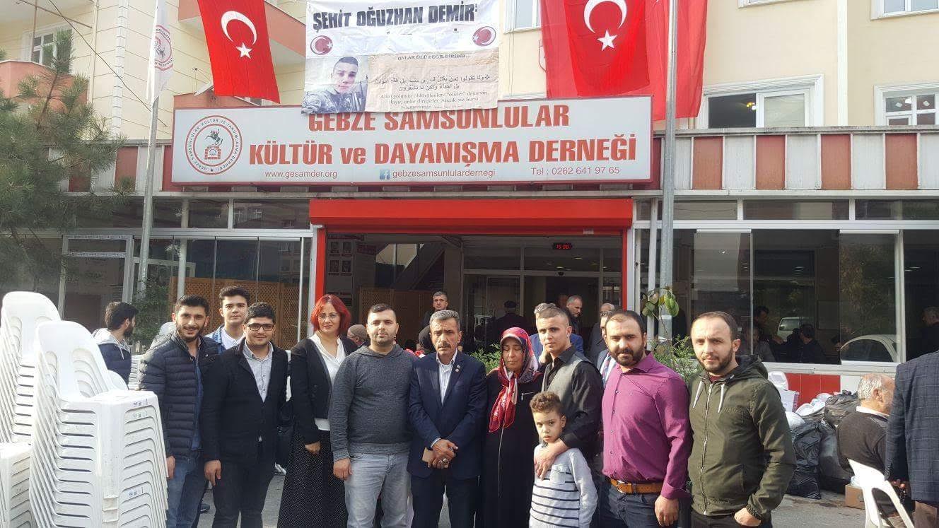 Gebze Samsunlular Derneği hafta sonu güzel bir organizasyona ev sahipliği yaptı. Dernek merkezinde düzenlenen programda geçen yıl Fırat Kalkanı Harekatında şehit olan Samsunlu Oğuzhan Demir için Kur’an okutuldu ve dualar edildi. Programa mahalle sakinleri, şehidimizin yakınları ailesi ve tüm sevenleri ile yüzlerce çevre sakini ve dernek üyesi katıldı.