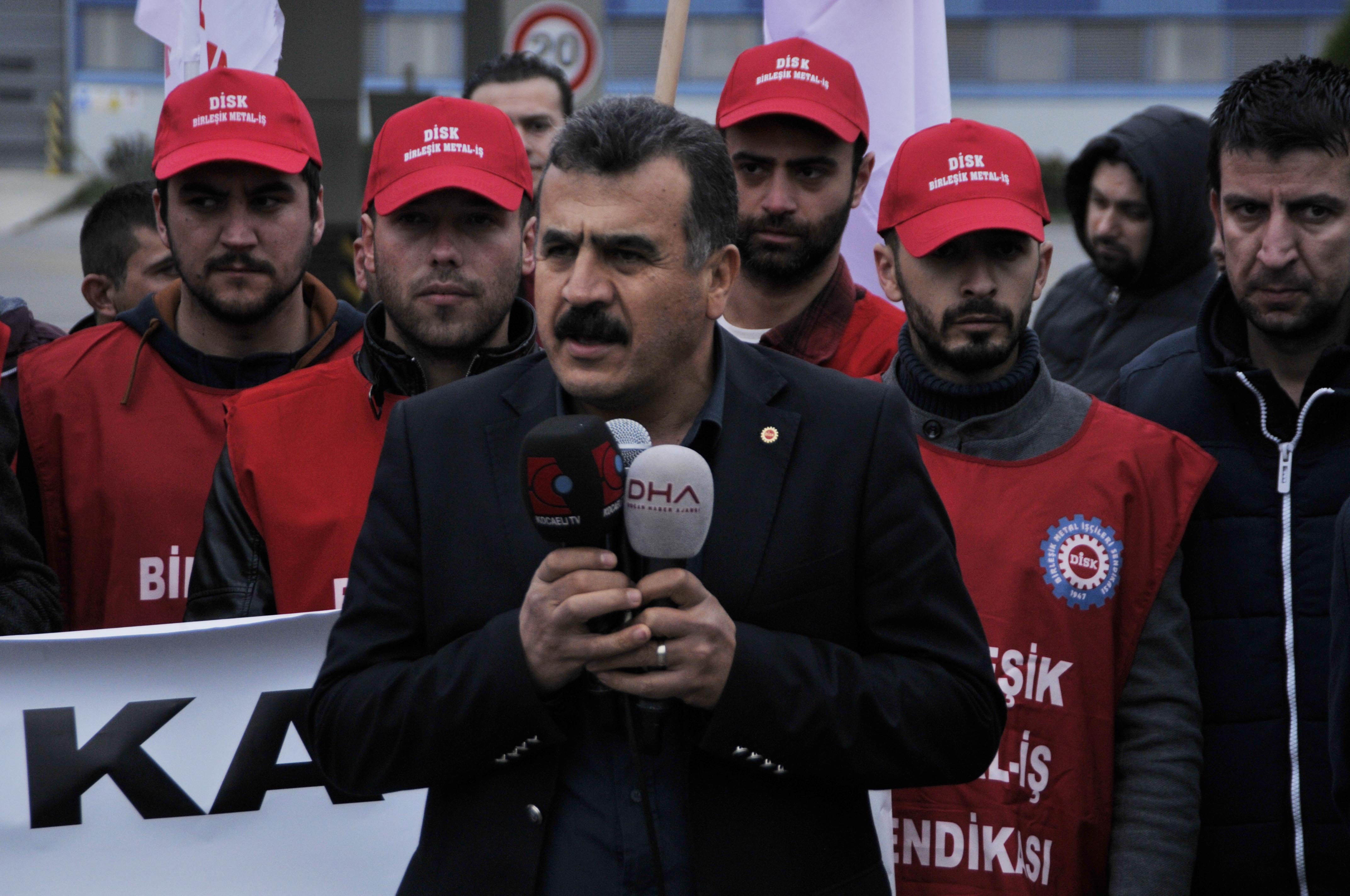 Türkiye'den birkaç tane yandaş sendika katıldı. Bu yaşananları görmek istemeyen yandaş sendikalar katıldı. Orada Sayın Başbakan çıktı, 'İşçiler için örgütlenin' dedi. Sonuna kadar yanlarında olduğunu belirten beyanlarda bulundu. Örgütlenmeye teşvik etti. Biz buradan Sayın Başbakan'a çağrı yapıyoruz. 40 tane metal işçisi burada örgütlendi, yasal hakkını kullandı. İşten çıkardılar. Bir noktada bunun sorumlusu sizsiniz. İşçilere çağrı yaptınız, 'Anayasal hakkınızı kullanın' diye. Buyurun, buradaki yaşananlara müdahale edin. Bu hukuksuzluğa müdahale edin ve sözünüzü yerine getirin. Biz sizden bunları bekliyoruz. Buradaki insanlara bir ülke yöneticisi sahip çıkmak zorundadır."