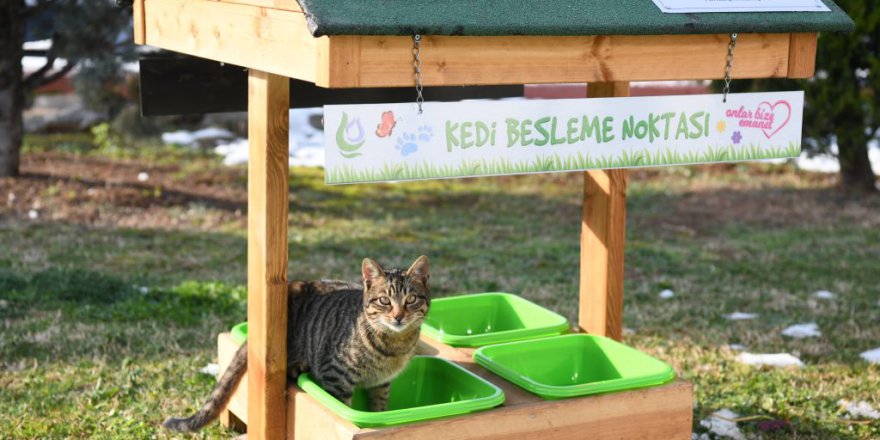 Belediye ekipleri, sokak hayvanlarının beslenme noktalarına düzenli olarak mama ve su desteğinin yanında tesislerde kalan yemekleri bırakıyor.