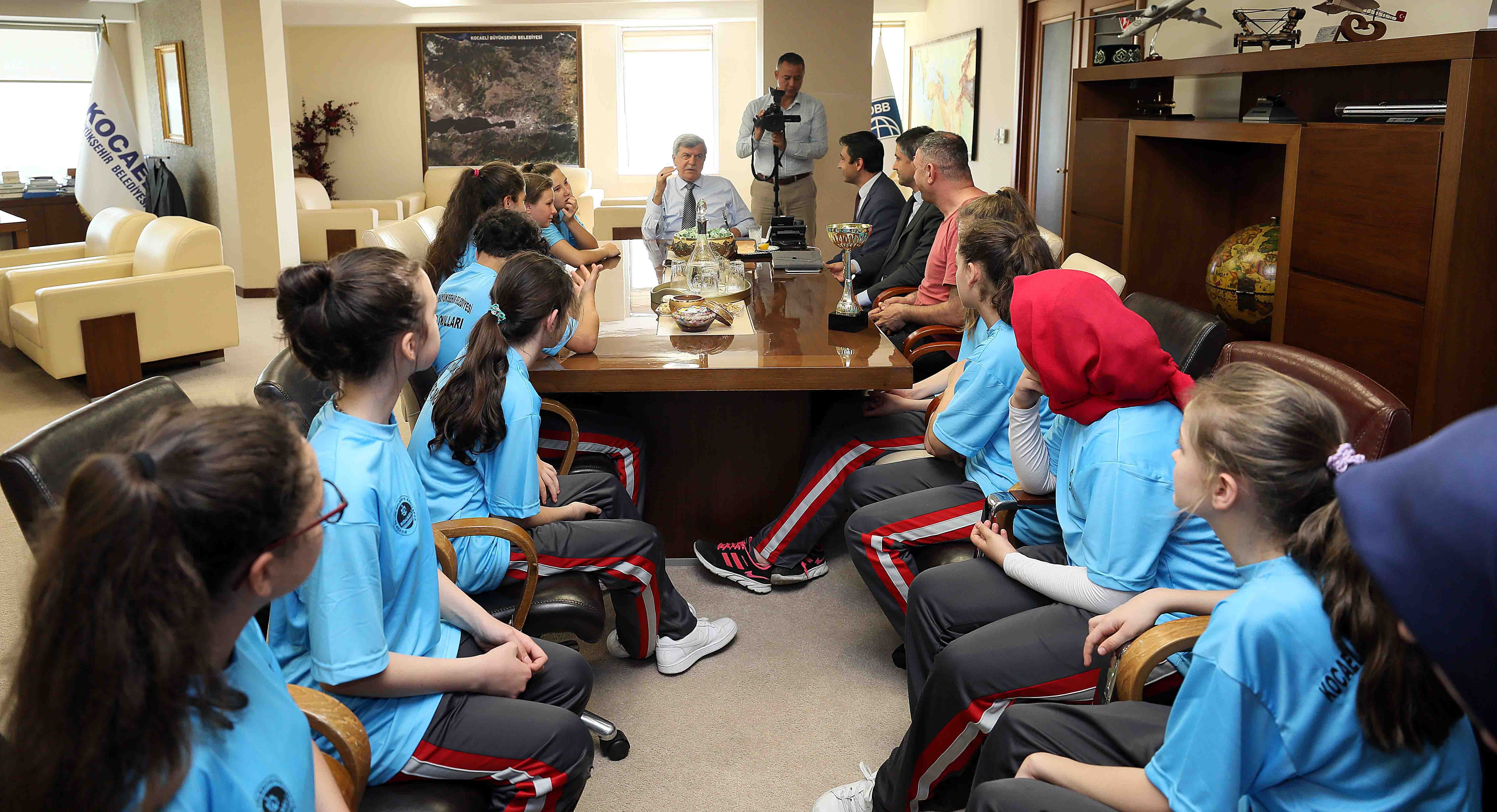 Başkan Karaosmanoğlu, Büyükşehir Belediyesi tarafından okullarda verilen ücretsiz spor okulları projesi kapsamında başarı elde eden İzmit Kazım Karabekir Ortaokulu idarecileri ve basketbol takımının oyuncularıyla buluştu.