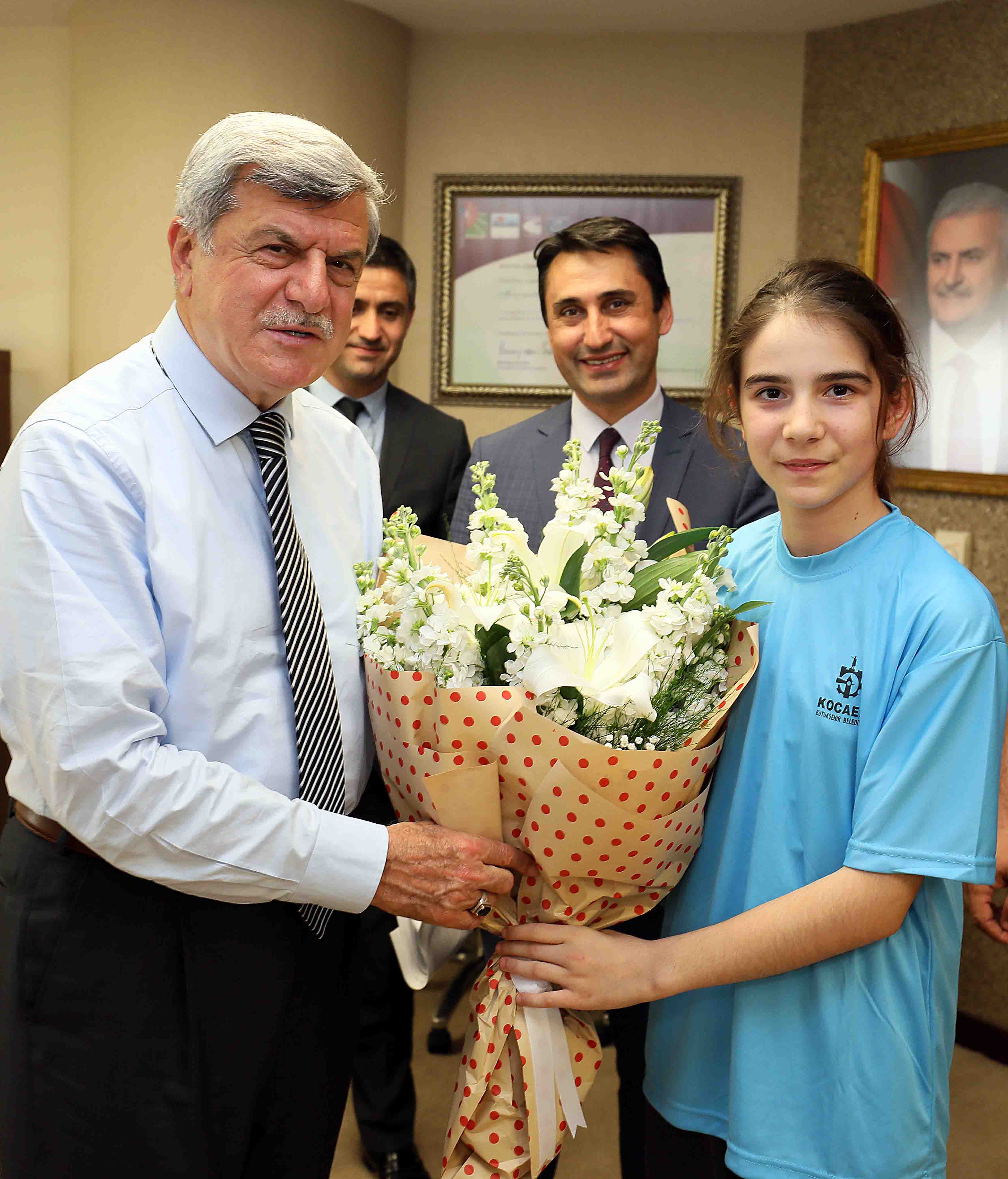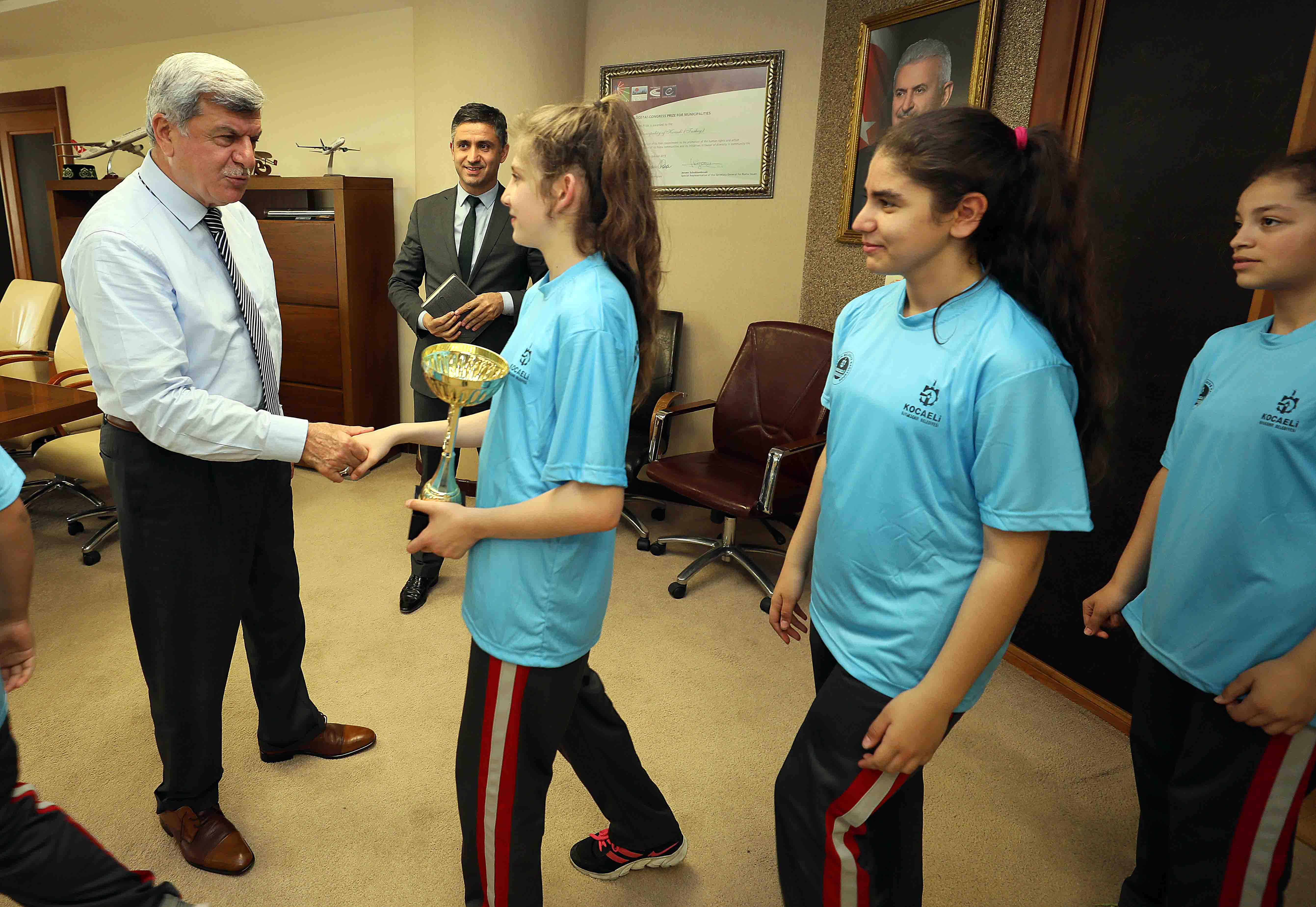Türk Dünyası Belediyeler Birliği (TDBB) ve Kocaeli Büyükşehir Belediye Başkanı İbrahim Karaosmanoğlu, İzmit Kazım Karabekir Ortaokulu Okul Müdürü Serkan Yazar, Aile Birliği Başkanı Meryem Kanpara, Beden Eğitimi Öğretmeni Halim Bayram ve okulun kız basketbol takımı oyuncularını makamında konuk etti. Okulda yer alan 505 öğrencinin 250 öğrencisinin aktif şekilde spor yaptığı bilgisini alan Başkan Karaosmanoğlu, spor okullarına giden öğrencilerin iki yıl gibi bir sürede önce basketbol branşında Kocaeli birincisi daha sonra bölge birincisi olmalarını takdirle karşılayarak kız öğrencilerin elde ettikleri başarıdan dolayı tebrik etti.