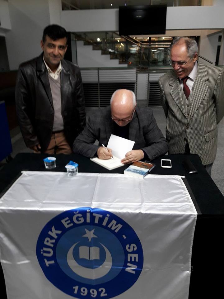Türk Eğitim-Sen Kocaeli 2 No’lu Şubesi tarafından tertip edilen konferans da eski Türk tarihi uzmanı Prof. Dr. Ahmet Taşağıl konuşmacı olarak katıldı. M.Ö 3000’lerde resmî olarak TÜRK adının Çin kaynaklarında bile yer aldığı belirten Taşağıl, Orta Asya coğrafyasında bulunan birçok BALBAL (mezar taşı ) mağara resmî ve çeşitli anıtların tarihteki Türk adının çok daha eskilere ( 100 bin yıl gibi ) dayanabileceğini ifade etti. Taşağıl, Bozkurt’un Türk’ler için önemi ile ilgili gelen bir soruya ise; “Bozkurt Türkler için çok önemlidir ama diğer milletlerde olduğu gibi tek kutsal mitolojik hayvan değildir bunun yanında Geyik, Pars da önemlidir” dedi. Program sonrası Taşağıl, kitaplarını imzaladı ve 200 kitabı yaklaşık 1 saatte imzaladı.