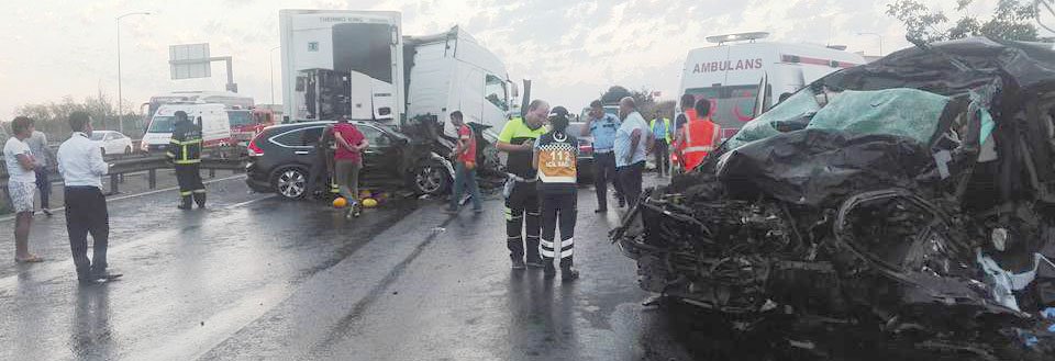 Gebze TEM Otoyolu Muallimköy mevkiinde sürücüsünün kontrolünden çıkan TIR, karşı şeride geçerek 1 minibüs ve 2 otomobille çarpıştı. Can pazarının...
