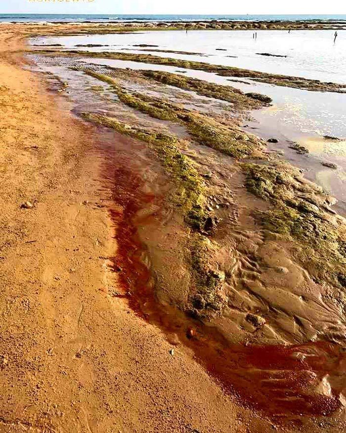 Dernek, marn isimli yumuşak tortul kayaçlardan oluşmuş ve deniz dalgaları ile rüzgârın aşındırması sonucu zamanla bir merdivene benzeyen kayacın ve yanındaki kumsalın pas kırmızısına bürünmüş fotoğraflarını Facebook sayfasından paylaşırken, bu şaşırtıcı gelişmenin nedeninin araştırıldığını belirtti.