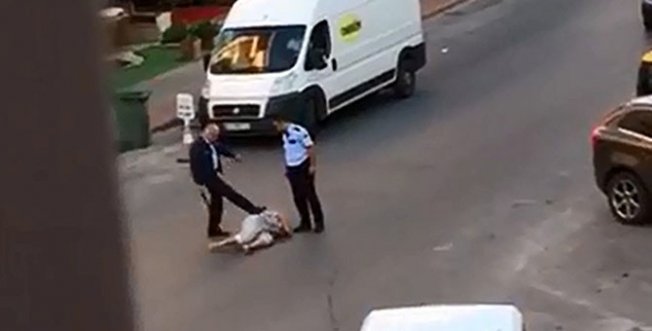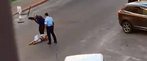 Antalya'da kaldırımda yatan kadını tekmeleyerek, copla vuran polis tutuklandı.