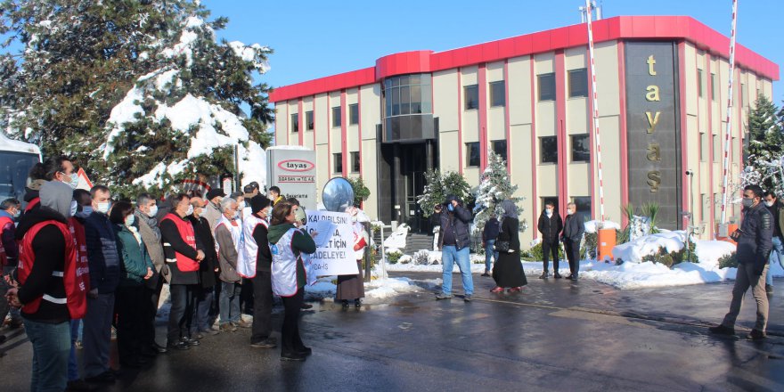 Bugün itibariyle izne çıkarılan bu işçiler işbaşı yapmaları gerekirken işbaşı yaptırılmamış, izin uygulaması uzatılmıştır. Bazı işçiler ise 6 aydan uzun zamandır ücretsiz izinde işbaşı yapacağı günü beklemektedir. Onlarca işçiyi izne çıkaran Tayaş patron ve yöneticileri ilanla yeni işçi alımı girişiminde bulunmuştur. Mevcut durumda işçiyi ücretsiz izne çıkarıp yeni işçi alımına girişmek haksızlık ve hukuksuzluk değil de nedir?”