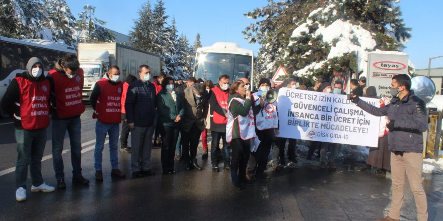 AKP Hükümeti’nin pandemi sürecinde sermayeyi destek ve teşvik için tüm uyarılara ve aleni hak ihlallerine rağmen sürdürdüğü ücretsiz izin vakasında sendikal haklar konusunda Anayasa çiğneme ve yasa tanımaz tavrıyla bilinen Tayaş Gıda’da da patlak verdi. Daha önce Öz Gıda-İş’in örgütlenip yetki aldığı ancak işverenin Anayasa çiğneyerek sendikayı tasfiye ettiği, Tek Gıda-İş’in de çabalarının olduğu, son dönemde ise bu sefer Gıda-İş’in örgütlenme çalışması içinde olduğu Tayaş Gıda’da 60’a yakın işçinin ücretsiz izninin 18 Ocak tarihi itibariyle yine uzatıldığı belirtildi.
