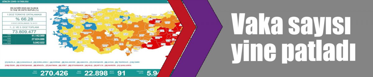 Sağlık Bakanlığınca Günlük Koronavirüs Tablosu, "covid19.saglik.gov.tr" adresinden paylaşıldı. Tabloya göre, Türkiye'de son 24 saatte 270 bin 426 Kovid-19 testi yapıldı, 22 bin 898 kişinin testi pozitif çıktı, 91 kişi hayatını kaybetti, iyileşen sayısı ise 5 bin 547 oldu. Sosyal medya hesabından bir değerlendirme yapan Sağlık Bakanı Fahrettin Koca, “ Vaka sayılarındaki artış hızı azalma eğiliminde. Bunu kalıcı hale getirecek olan biziz. Tedbirden taviz vermeden aşınızı olun.” dedi.