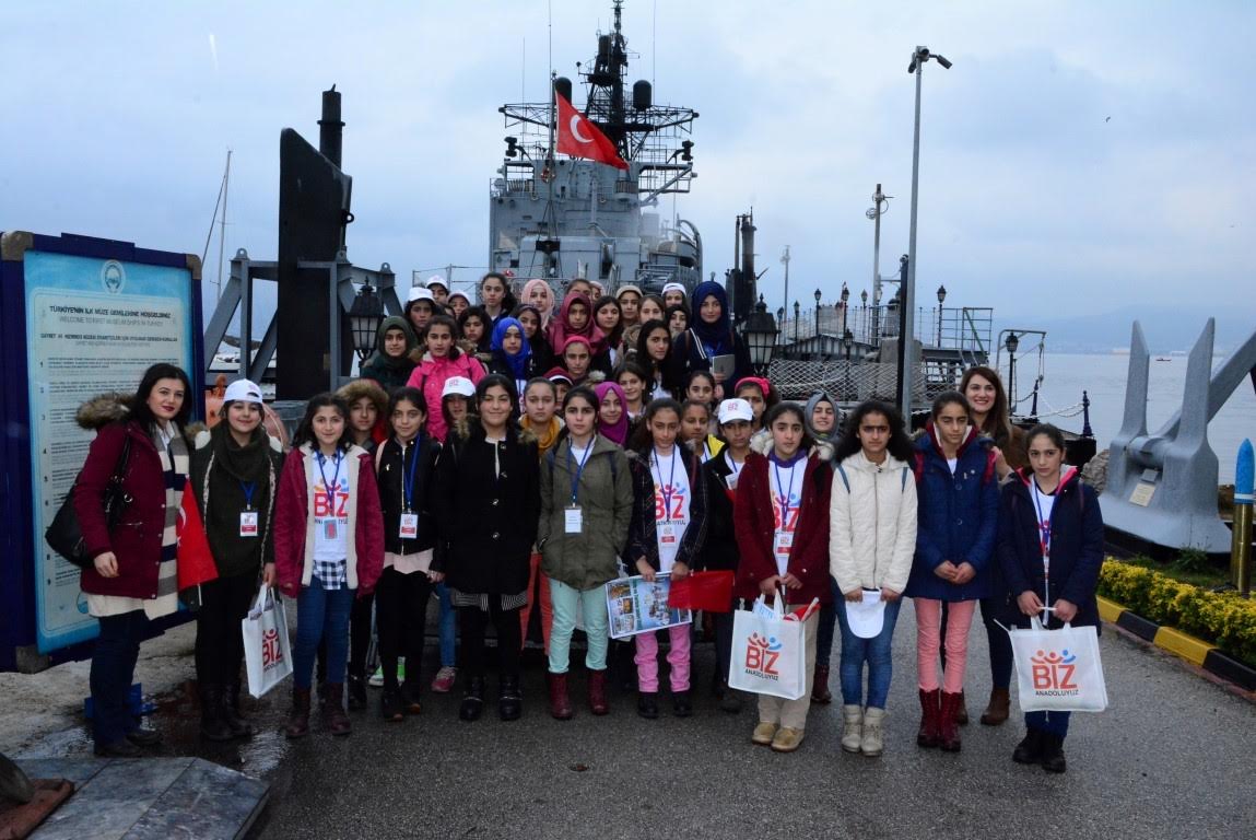 Doğu ve Güneydoğu Anadolu Bölgelerindeki 21 ilimizden seçilen 15 yaş ve altı 50.000 katılımcının ülkemizin farklı şehirlerini ziyaret etmeleri sağlanarak, iller arasında kardeşlik köprüsünün kurulması ve kardeşlik ruhunun geliştirilmesi, terör örgütlerinin istismarından ve kötü alışkanlıklardan uzak tutulması, kardeşlik ve huzura katkı sunulması, iller arasında kültürel ve ortak değerlerin paylaşılması amacıyla İçişleri Bakanlığınca hayata geçirilen “Biz Anadoluyuz” projesi kapsamında; Diyadin Atatürk Ortaokulu Müzik Öğretmeni Ezgi Bal ve Karapazar Ortaokulu Fen Bilgisi Öğretmeni Elif Asi refakatlerinde ilimize gelen 8. grup 47 misafir öğrenci Kovaeli Valisi Hüseyin Aksoy’a ziyarette bulundular. Ziyarete Vali Aksoy’un yanı sıra, Vali Yardımcısı Ahmet Büyükçelik, İl Planlama ve Koordinasyon Müdürü Mahmut Baytüz, Diyadin Atatürk Ortaokulu Müzik Öğretmeni Ezgi Bal ve Karapazar Ortaokulu Fen Bilgisi Öğretmeni Elif Asi ile 47 misafir öğrenci katıldı.