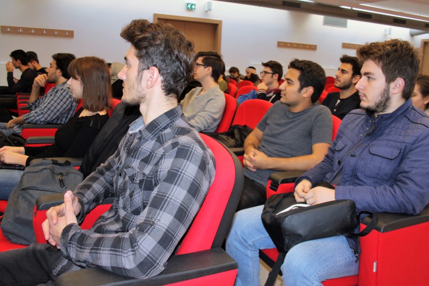 Gebze Teknik Üniversitesi (GTÜ) Elektronik Mühendisliği Konferans Salonu’nda gerçekleşen etkinlikte, IBM Müşteri İnovasyon Merkezi Yöneticisi Mehmet Tunçkanat, Watson Çözüm Mimarı Ahmet Said Çelik ve DevEx Team’den uzmanların katılımıyla başta robot ve bulut teknolojisi olmak üzere pek çok konuda güncel bilgiler ışığında bir söyleşi gerçekleşti. İlk oturumda Endüstri 4.0 başlıklı bir sunum yapan Mehmet Tunçkanat, geçmişten günümüze endüstrinin tarihsel gelişim seyri hakkında bilgilendirmede bulundu. Su ve buhar gücünün kullanılmasıyla 1784 yılında endüstride birinci dönemin başladığını ve 1870 yılından itibaren elektrik enerjisiyle endüstri 2.0, 1969 sonrasında ise elektronikteki gelişmelerle endüstride 3.0 döneminin yaşandığını ifade etti. Tunçkanat, içerisinde bulunduğumuz yüzyılın başlarında hızla gelişen bilişim dünyasının endüstride 4.0 dönemini başlattığını bildirdi. Bu dönemde gelişen Nesnelerin İnterneti, Otonom Sistemler, Bilişim ve Analitik gibi kavramları açıkladı. Günümüz teknolojisinin dayandığı dört ana unsur olan; İleri Analitik, Bulut Teknolojisi, Mobil ve Güvenlik alanlarında yapılan güncel bilgileri paylaştı.