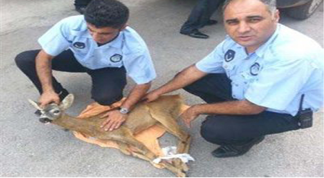 Derince İlçesi'ne bağlı Çınarlı Köyü yakınlarındaki ormanlık alandan geçen yolda, bir aracın çarpması sonucu yaralanan yavru karaca, Darıca...