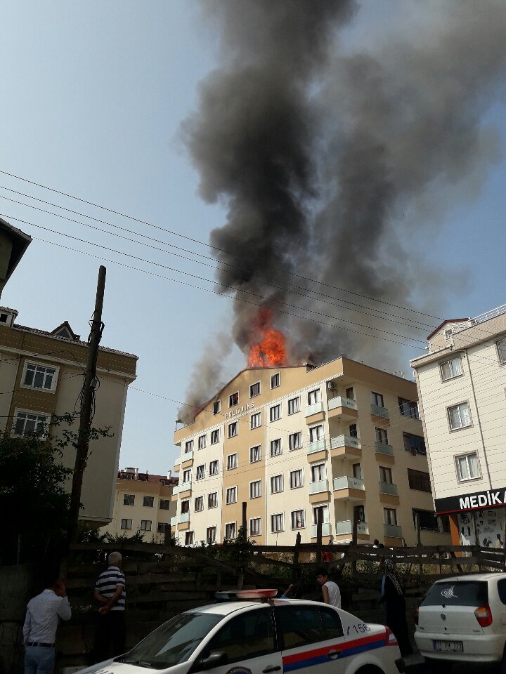 Gebze dün yine büyük bir yangın paniğini ucuz atlattı. Osman Yılmaz Mahallesi 625 sokakta bulunan 5 katlı bir binanın çatı katında çıkan yangın büyük paniğe neden oldu. Bakım- onarım yapılırken çıktığı söylenen yangın kısa sürede büyüdü ve çevrede büyük paniğe neden oldu. Gebze’nin bir çok noktasından da görülebilen yangına itfaiye kısa sürede müdahale etmek istedi ancak merdivenlerin yetersiz olması itfaiyeye de zor anlar yaşattı. Yangına müdahale eden bir itfaiye görevlisi ise dumandan etkilenerek hastaneye kaldırıldı. Çevre sakinleri, Gebze bölgesinde sık sık bu tür yangınların çıktığına dikkat çekerek, daha uzun merdivenli araçların görev yapmasını istediler. Öte yandan yangında can kaybı olmazken, uzun süre yanan binanın çatı kısmında büyük hasar oluştuğu gözlendi.
