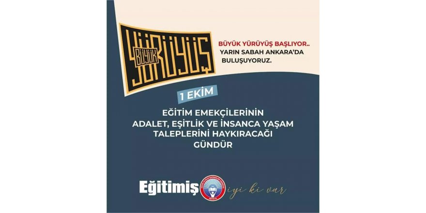 Heyet bugün Eğitim-İş Sendikası Genel Merkezi tarafından düzenlenecek Büyük Yürüyüş’te eğitim emekçilerinin adalet, eşitlik ve insanca yaşam taleplerini haykıracak.