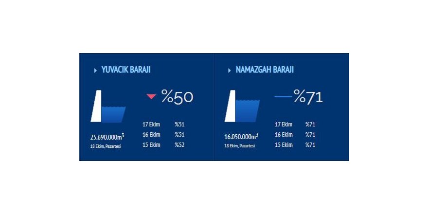 Kocaeli'ye yaz mevsiminin sona erdiği ve sonbaharın geldiği aylarda beklenen yağışların düşmemesi, kentin su ihtiyacını karşılayan Yuvacık Barajını olumsuz etkiledi. 51 milyon metreküp kapasiteli Yuvacık Barajı, Temmuz ayına kadar tam dolu olarak hizmet verirken, kurak geçen ayların ardından su seviyesi sürekli düşerek yüzde 50’ye geriledi. Bugün yapılan ölçüme göre, Yuvacık Barajı’nda 25 milyon 690 bin metreküp su bulunuyor. Kocaeli’nin bir diğer barajı olan Namazgâh Barajında ise su seviyesi de yüzde 71 seviyesinde. Barajdaki su miktarı ise 16 milyon 50 bin metreküp olarak ölçüldü.